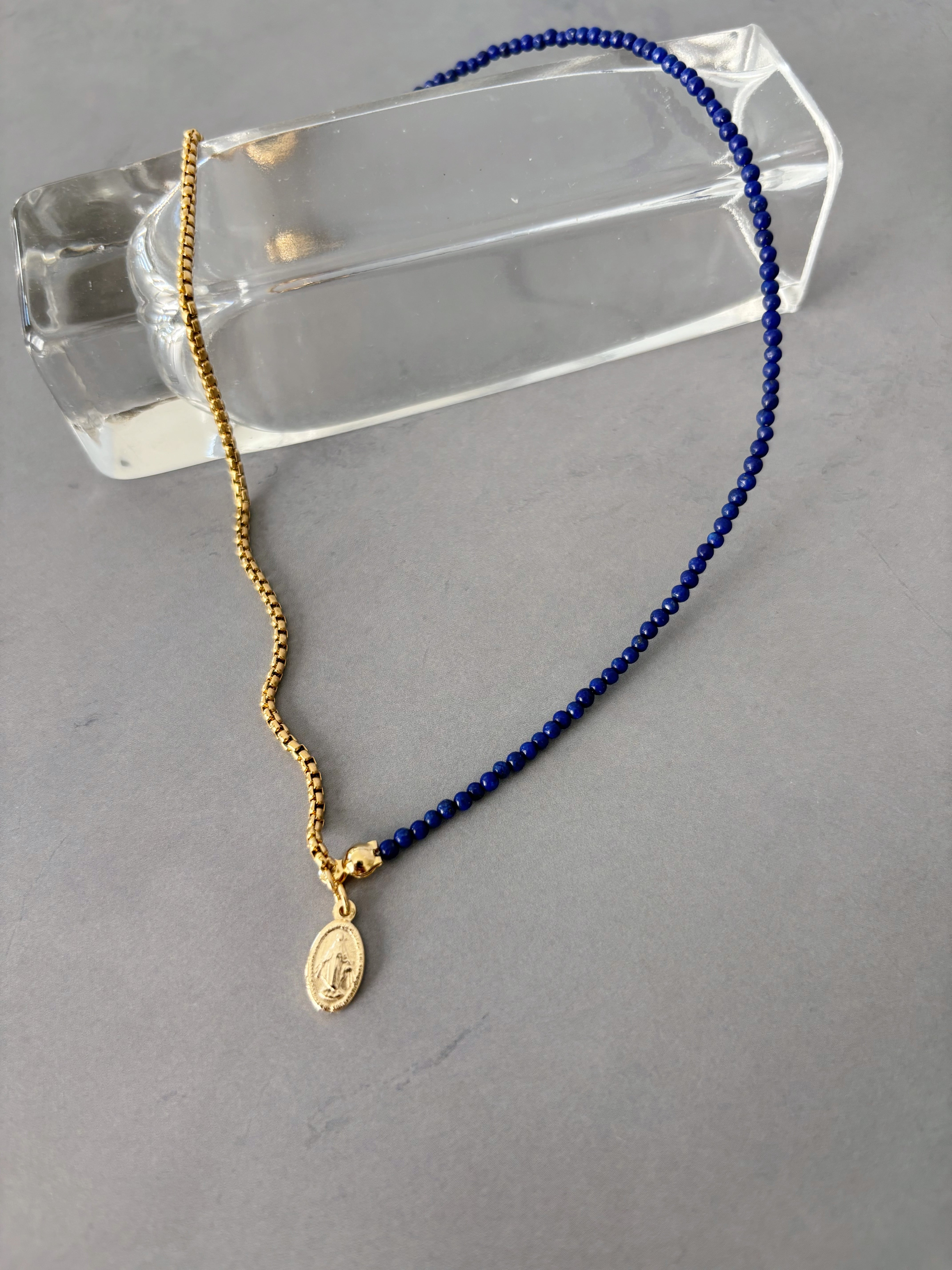 また、マリア像をモチーフとしたチャームはラピスラズリの神秘的な雰囲気にぴったりです